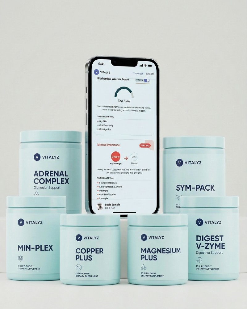 Unlike generic wellness plans, Vitalyz uses your unique hair mineral profile to see exactly what your body is retaining or losing. Whether you are dealing with menopausal fatigue, athletic burnout, or general brain fog, our AI analyses your data and provides the optimal protocol for your specific situation.